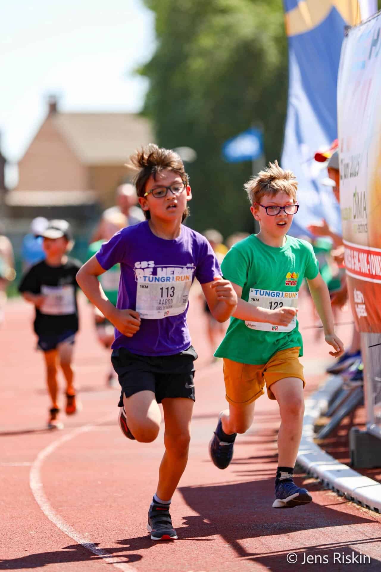 Deze allerkleinsten lopen 1 rondje van 400m op de piste.